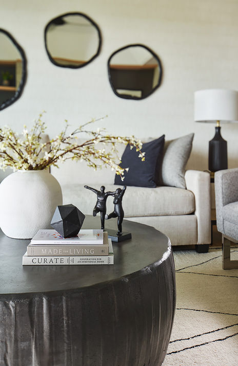 Our clients made a big move in their retirement from northern Ontario to the beautiful Niagara region. They found a lovely newly-built home in a quiet retirement community, and were ready to embark on a new phase of life. Having down-sized from two properties into one and leaving all of their furnishings behind, they were ready for a fresh start. We embraced the modern feel of their new house, created a design scheme that works with the existing architectural details and our clients functional needs and personal style. New custom cabinetry was strategically used to integrate with the existing and improve the function and storage in just about every room of the home; this includes a new kitchen island, cabinetry flanking both fireplaces, foyer accent wall, and a wine cabinet. We also created a new combined fitness room and art studio from scratch in an unfinished corner of the basement. Custom furnishings and window treatments throughout create a warm and welcoming modern space and turn this house into a beautiful home that our clients can enjoy their retirement in.